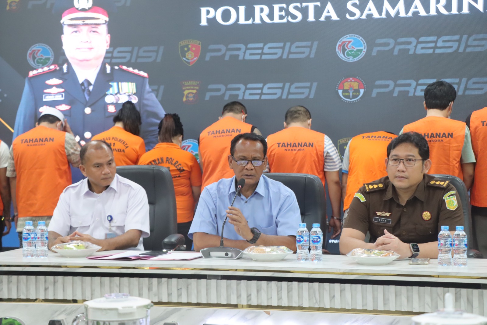 Konferensi pers pemusnahan barang bukti narkoba di Polresta Samarinda, dihadiri perwakilan BNN, Kejari, dan Kepolisian, Rabu (28/5/2025). (Foto: Humas Polresta Samarinda)