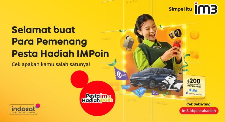 Jakarta, Indcyber.com – Indosat Ooredoo Hutchison (Indosat atau IOH) melalui brand IM3 secara resmi mengumumkan para pemenang Pesta Hadiah IMPoin 2025, program apresiasi tahunan yang menjadi bentuk terima kasih IM3 atas kepercayaan jutaan pelanggan, baik yang telah bersama IM3 sejak lama maupun mereka yang baru memulai perjalanan digitalnya bersama IM3 dan IM3 Platinum. Diselenggarakan sejak 1 September hingga 31 Desember 2025, Pesta Hadiah IMPoin 2025 kembali menjadi momen spesial di mana setiap transaksi pelanggan sekecil apa pun bermakna. Setiap paket yang digunakan, setiap layanan yang dipilih, dan setiap IMPoin yang dikumpulkan menjadi bagian dari perjalanan bersama IM3, hingga akhirnya rangkaian program ini mencapai puncaknya melalui proses pengundian hadiah yang dilaksanakan pada 12 Januari 2026 di Kantor Pusat Indosat. Seluruh proses pengundian dilakukan secara transparan dan sesuai ketentuan yang berlaku, disaksikan oleh Lucida Gloria Utami Dewi, VP Head of Loyalty & Engagement PT Indosat Tbk, bersama dengan perwakilan dari Dinas Sosial DKI Jakarta, Kementerian Sosial Republik Indonesia dan Kepolisian Republik Indonesia beserta notaris selaku pejabat berwenang.