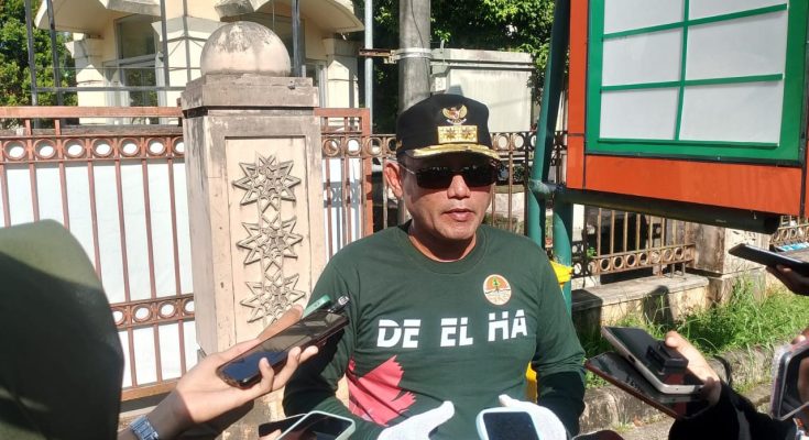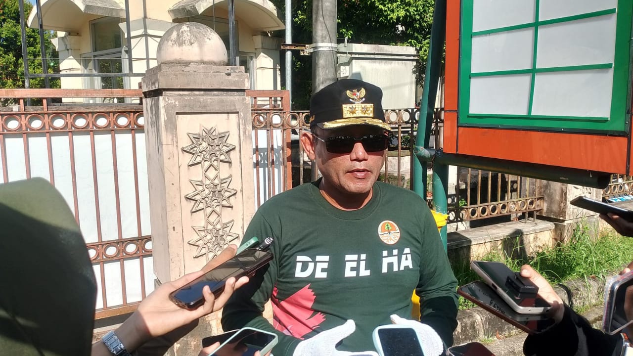 Wakil Gubernur Kalimantan Timur, Seno Aji, memberikan keterangan kepada media usai pimpin aksi bersih-bersih Islamic Center Samarinda. (Foto : Indra)