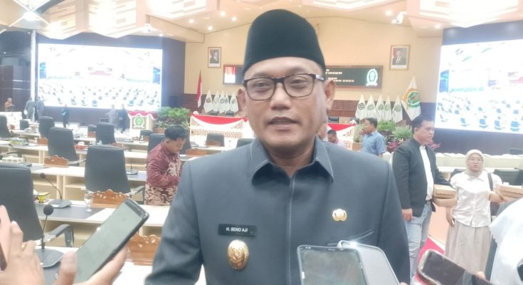 Wakil Gubernur Kalimantan Timur, H. Seno Aji, memberikan keterangan kepada awak media usai menghadiri Rapat Paripurna ke-35 DPRD Kaltim di Gedung Utama (B), Jumat (12/9/2025). Foto: Indra.