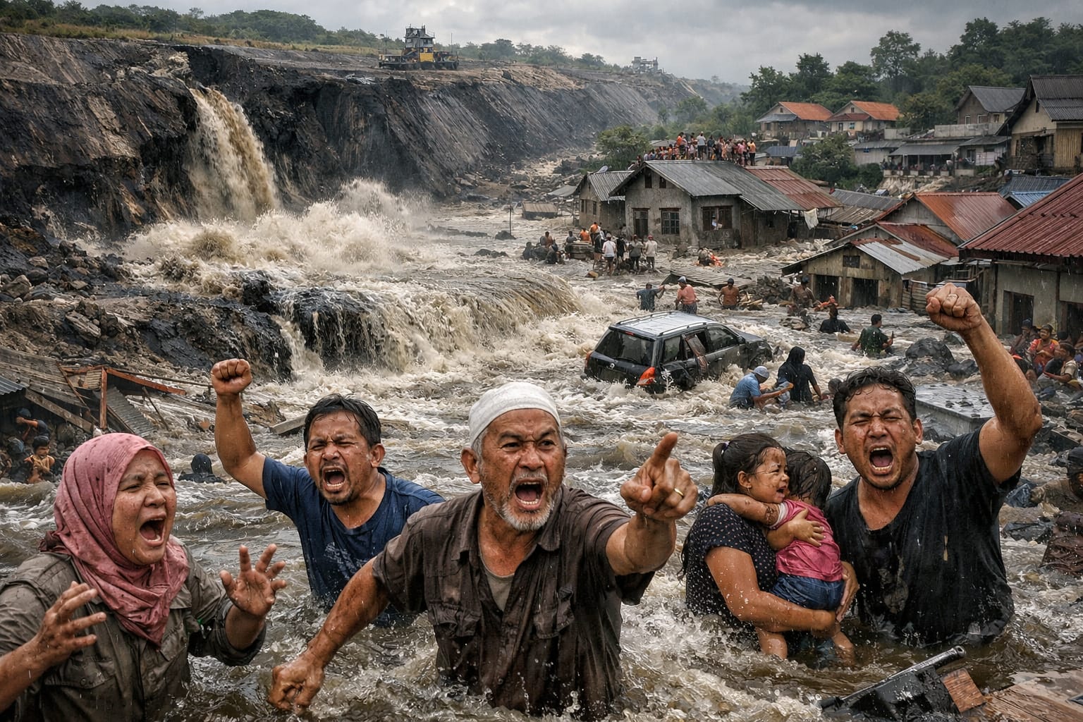 SANGA-SANGA, indcyber.com — PT Adimitra Baratama Nusantara (PT ABN) kini berada di bawah sorotan tajam publik setelah banjir lumpur misterius menerjang pemukiman warga Kecamatan Sanga-Sanga, Kelurahan Jawa, pada tengah malam buta. Tanpa hujan, tanpa peringatan, air keruh bercampur lumpur tambang tiba-tiba mengalir deras ke rumah-rumah warga, memicu kepanikan massal dan trauma.