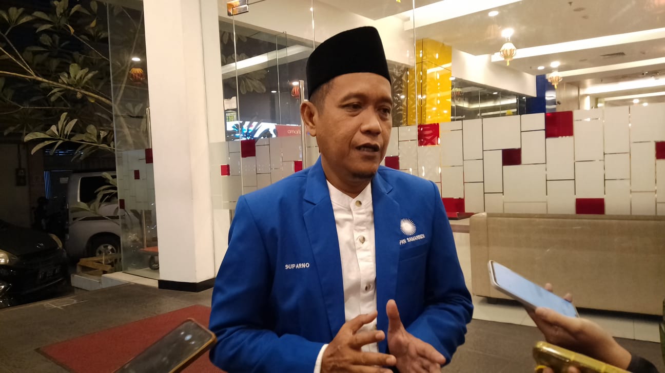 Ketua DPD Partai Amanat Nasional (PAN) Kota Samarinda, Suparno, memberikan keterangan kepada wartawan usai pelaksanaan Musyawarah Cabang (Muscab) PAN se-Kota Samarinda yang dirangkaikan dengan buka puasa bersama pengurus dan kader, Minggu (8/3/2026).
