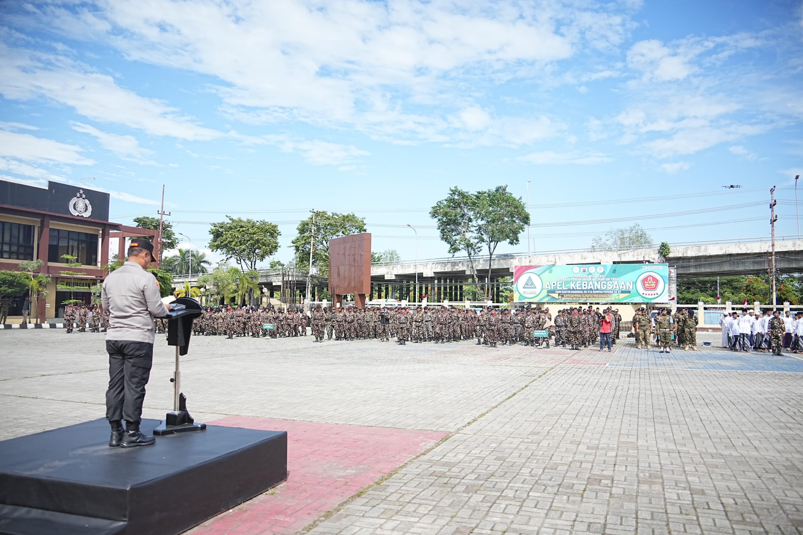 Kapolda Kaltim Irjen Pol Endar Priantoro memimpin jalannya Apel Kebangsaan yang diikuti ratusan peserta dari unsur santri, pemuda, dan Banser…