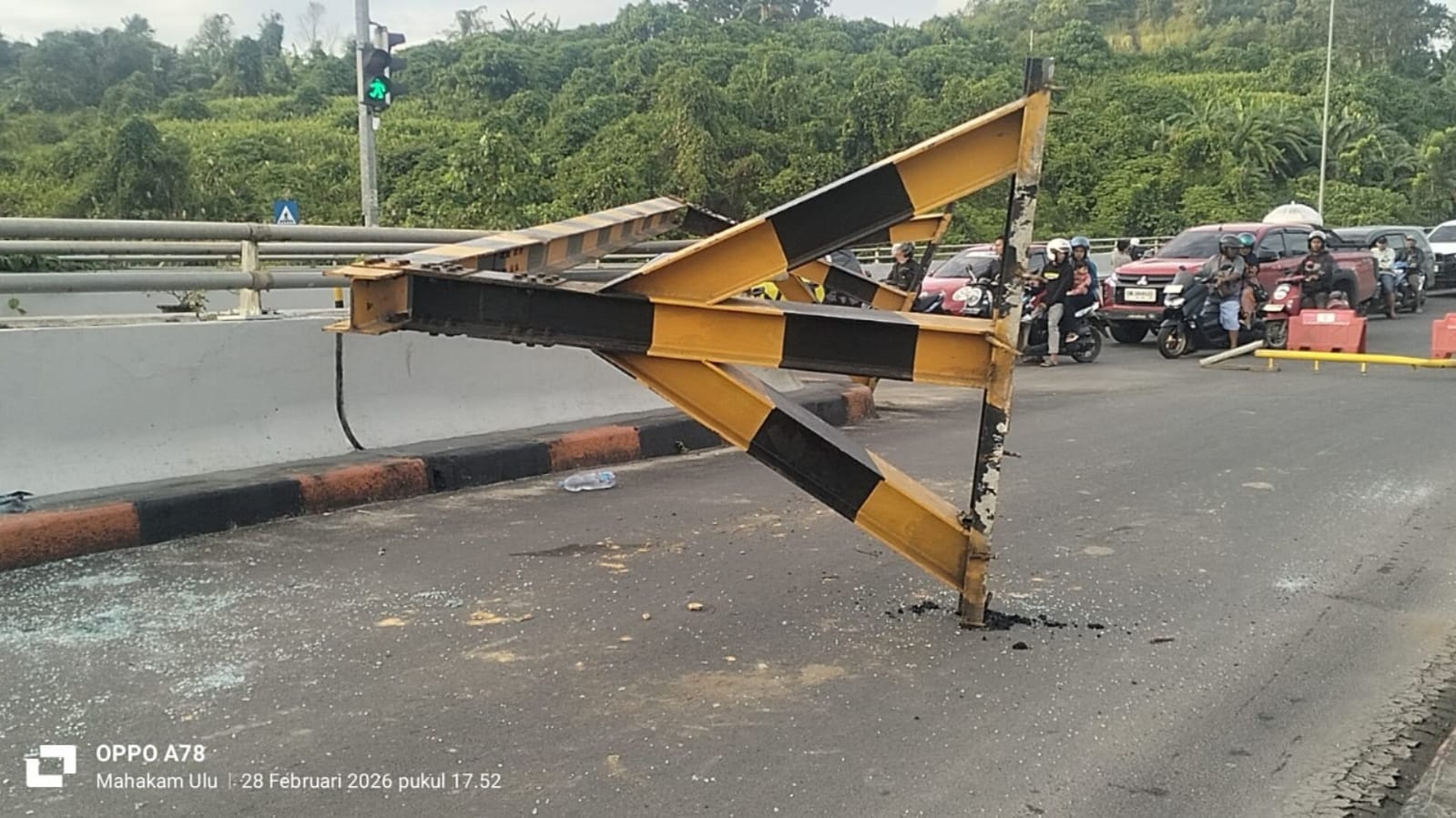Indcyber.com, SAMARINDA – Insiden penabrakan portal kembali terjadi di atau yang dikenal sebagai Jembatan Mahkota II, Samarinda. Sebuah truk box dilaporkan menghantam portal pembatas di sisi Palaran pada malam hari.